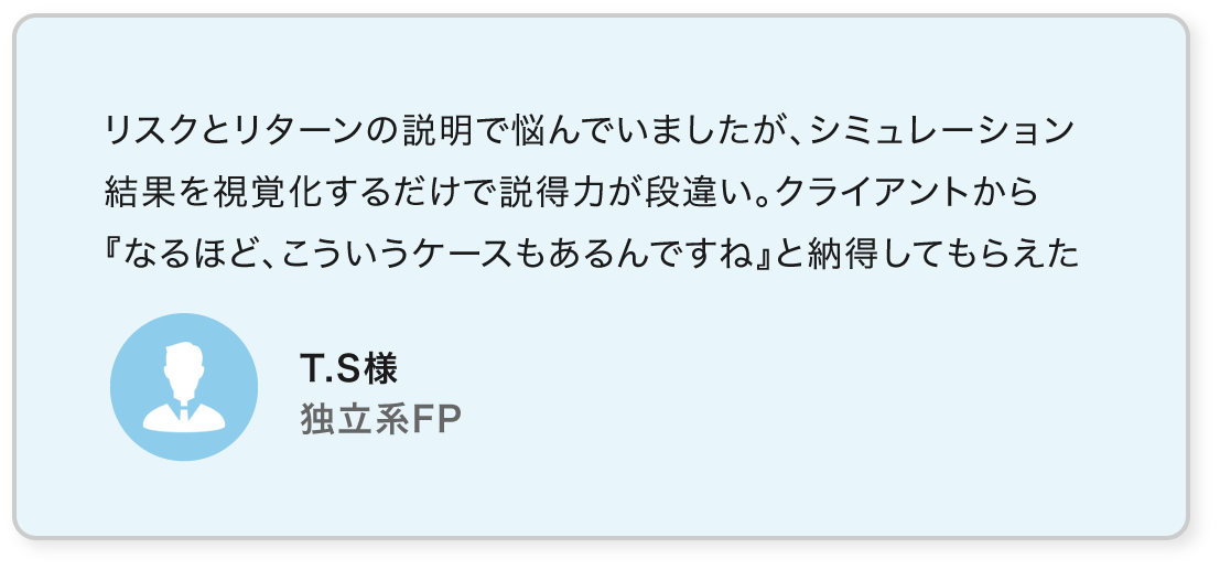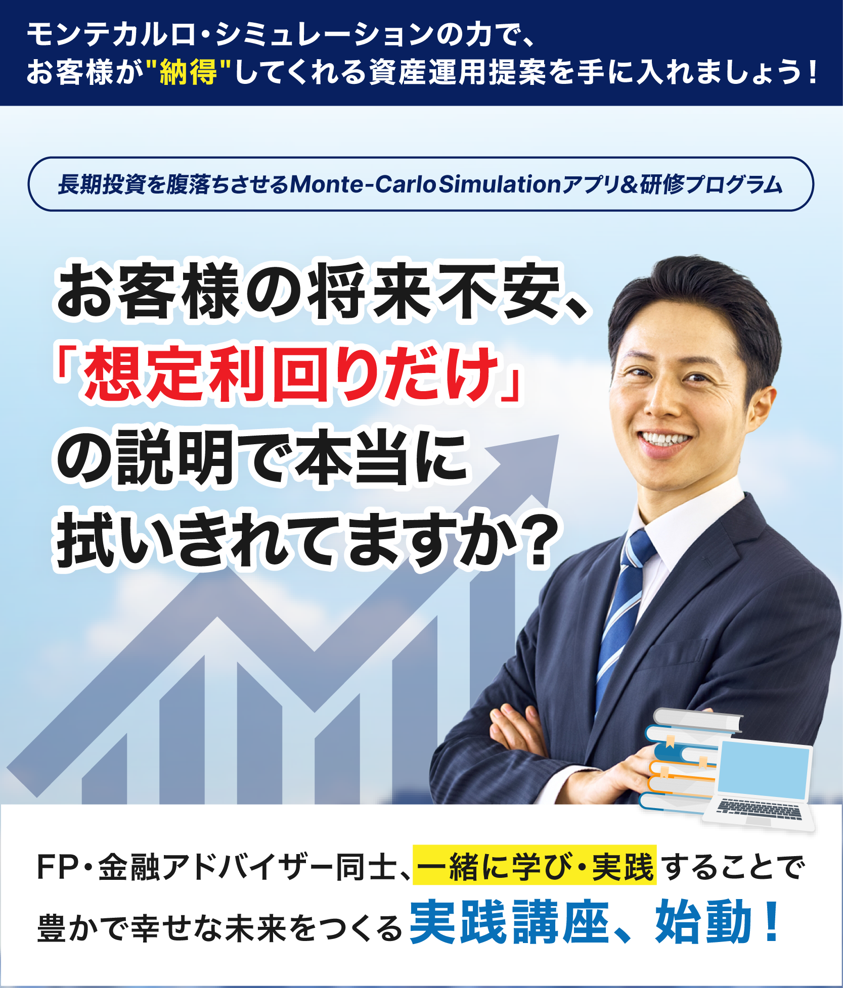- 独自に開発した「モンテカルロ・シミュレーションツール」を用いた資産運用コンサルの先駆者。