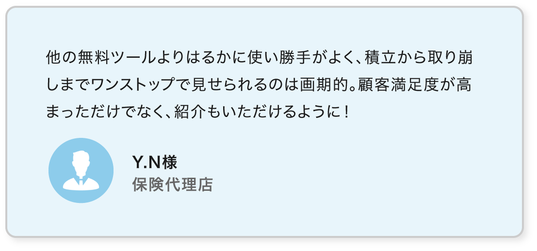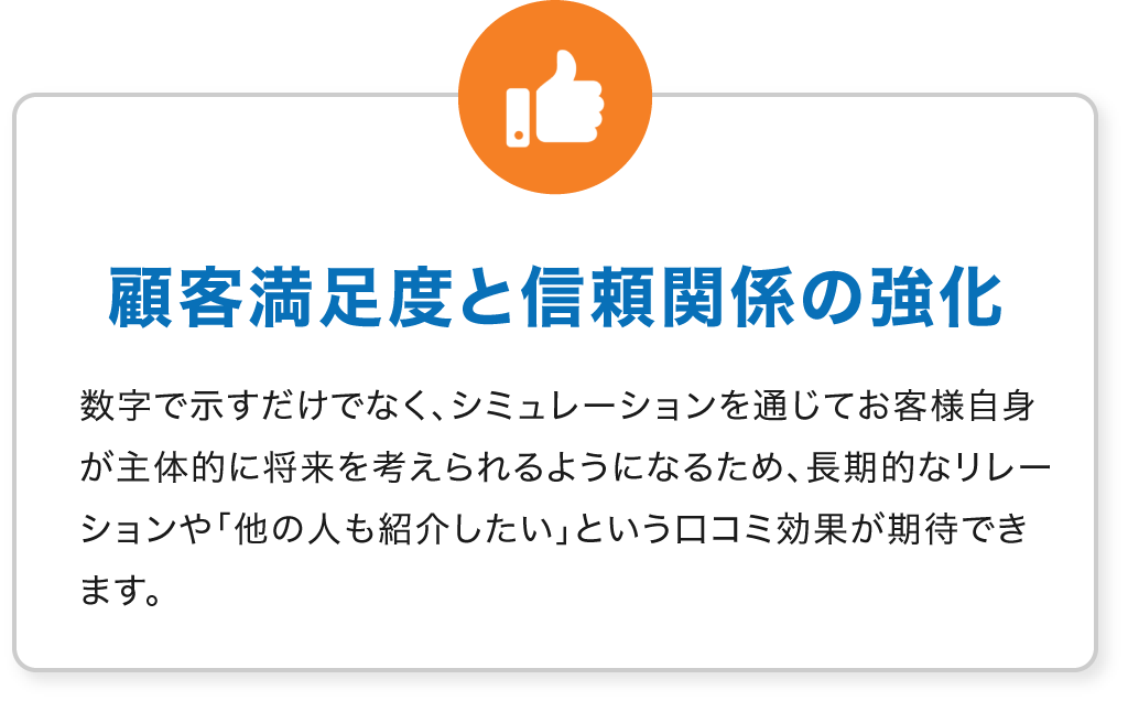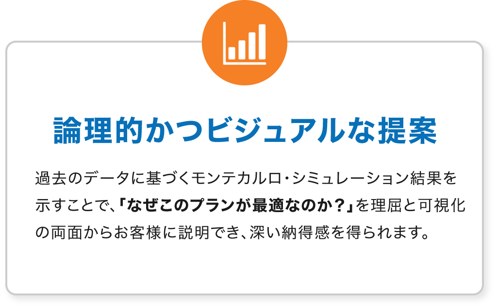 安心してご説明いただけます。複雑な金融情報を視覚的かつ平易な言葉でお伝えすることが可能です。
